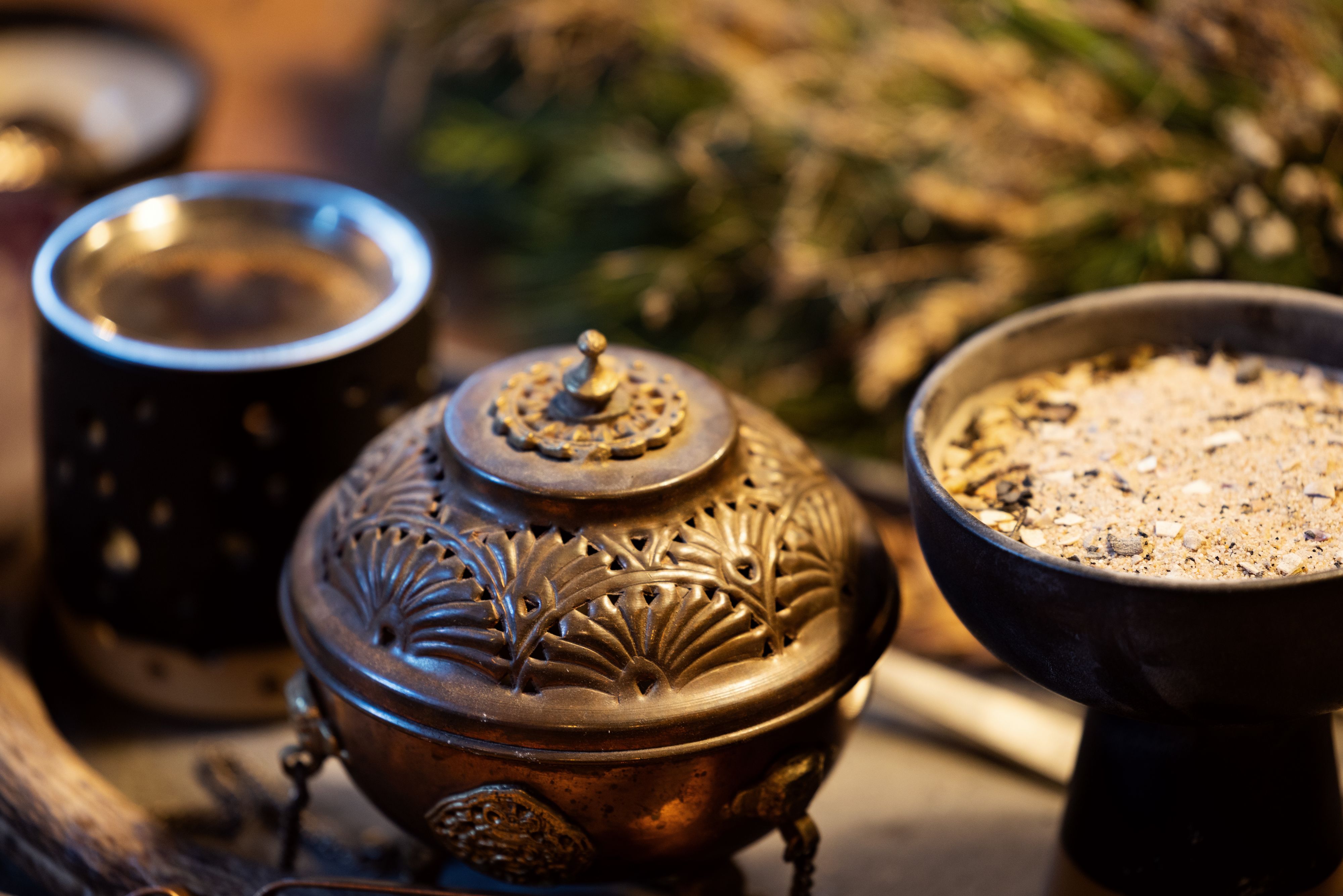 Das Räuchern wir schließlich mit dem Schützen abgeschlossen. Rauch ist dafür nicht notwendig – es reicht, auf einem Stövchen eine entsprechende Weihrauchmischung aufzulegen und sie so lange verdampfen zu lassen, wie man mag. Bei diesem Schritt muss nicht mehr gelüftet werden, die Fenster dürfen zu bleiben.